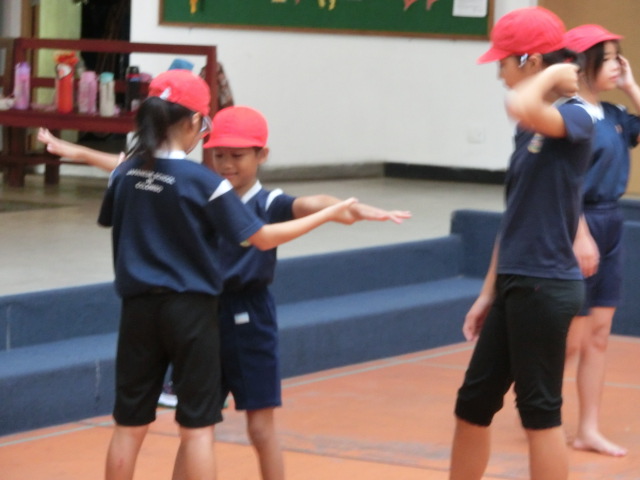 天候不順により朝マラソン、中止 朝マラソンの時間に、雨が降り始めました。 運動会の練習に切り替えました。 今日も、子どもたちは熱心に練習に取り組みます。 上級生のやさしく丁寧な指導で、みるみる上達していきます。 コロンボ日本人学校ならではの光景です。