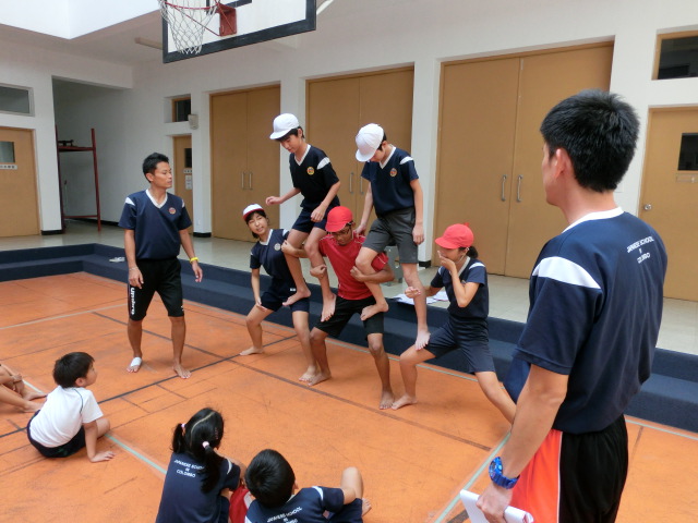 今日の運動会練習は、組体操です。