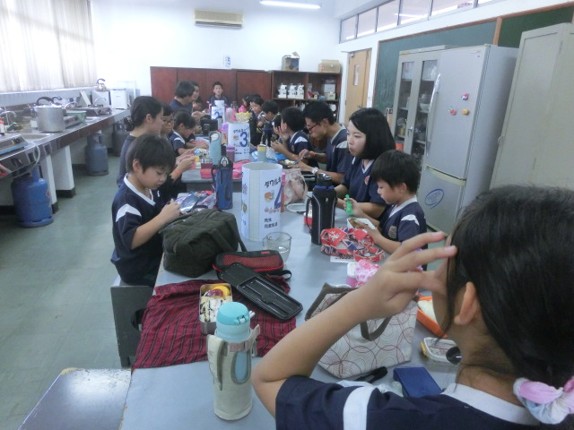 9月の誕生日の人をみんなでお祝いし、会食です。机の配置がかわり雰囲気がかわりました。