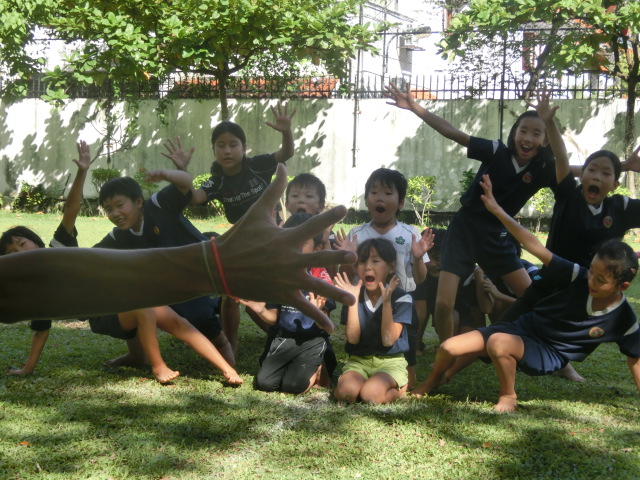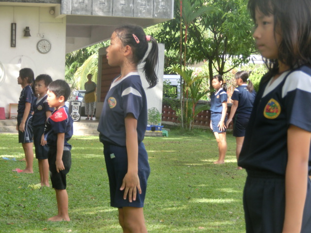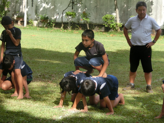 今日のコロンボタイムは、素足で組体操の練習です。