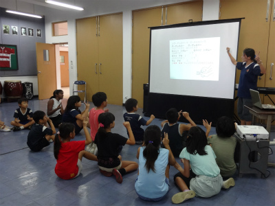 第1回目は、「マルマルマル」というスリランカの歌にのせて、どんな遊びができるかを考えました。その中で、子どもたちは、「ポーズをとる」、「にらめっこをする」など、楽しいアイデアを出し合っていました。