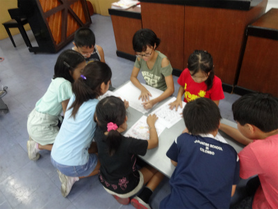 さあ、いよいよ自分たちで考える番です。これも、2つのグループに分かれて考えます。しかし、ただ作るだけではありません。2つのグループで出し合って、どちらが長く続くか競争です。考えるのにも熱が入ります。
