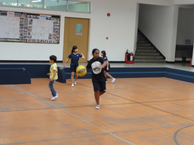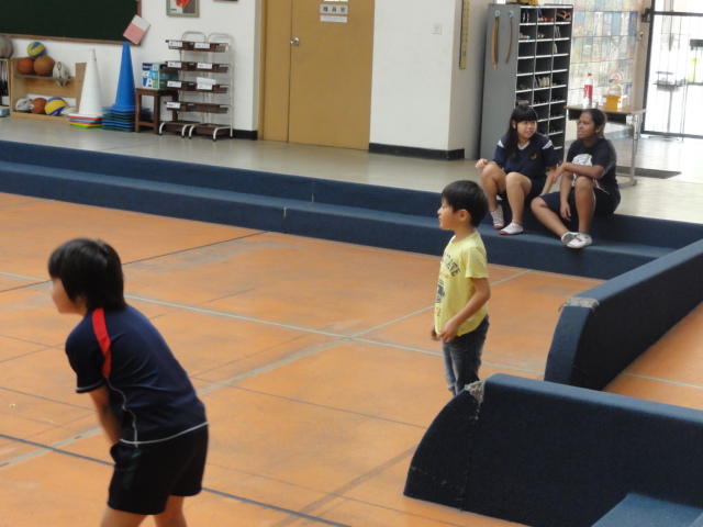 新しいお友だちも一緒にドッジを楽しみます。