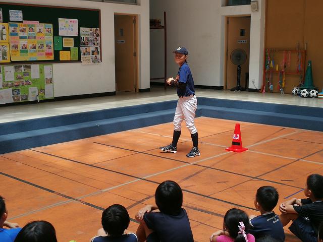 本日、4校時に日本代表による野球教室を行いました。これは外務省が主管し、世界各地に