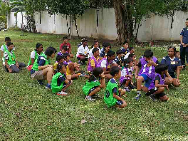 現地校交流会(開会式) 4校時からアショカ・カレッジスクール(ACS)の生徒と今年度、はじめての 交流会を行いました。当校とACSの交流は今年で7年目を迎えます。 今年は、七夕交流、学級レク、そして、サッカー交流を行います。