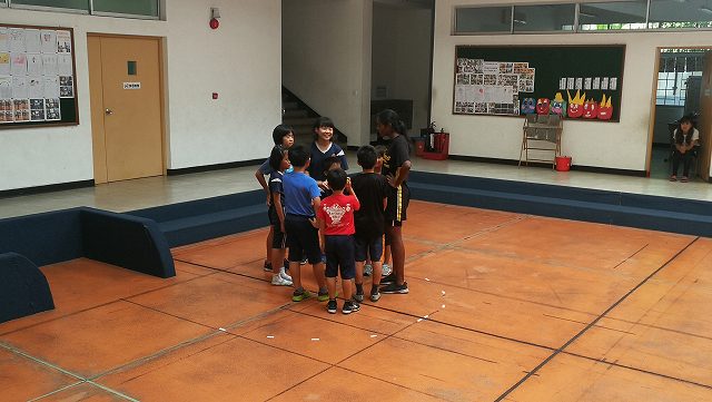 水曜日の長休みは、体育委員会主催の全校遊びを行っています。今日は、 王様ドッジボールを行いました。片方のチームの3連勝でした。