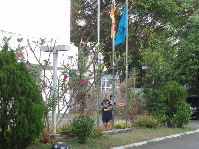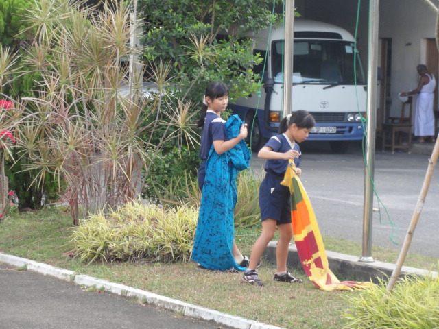 姉妹で国旗掲揚 下弦の月がきれいです。空気が乾燥していて、心地よい風がグランドを吹き抜けます。 コロンボは、一番すごしやすい季節になっています。 ツイート « 声援がとぶ朝マラ(3学期スタートはタイム計測) 準備運動 しっかり声が出てました🌺 »